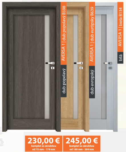 Cena dverí s komlet zárubňou od 180mm do 299mm je 245€